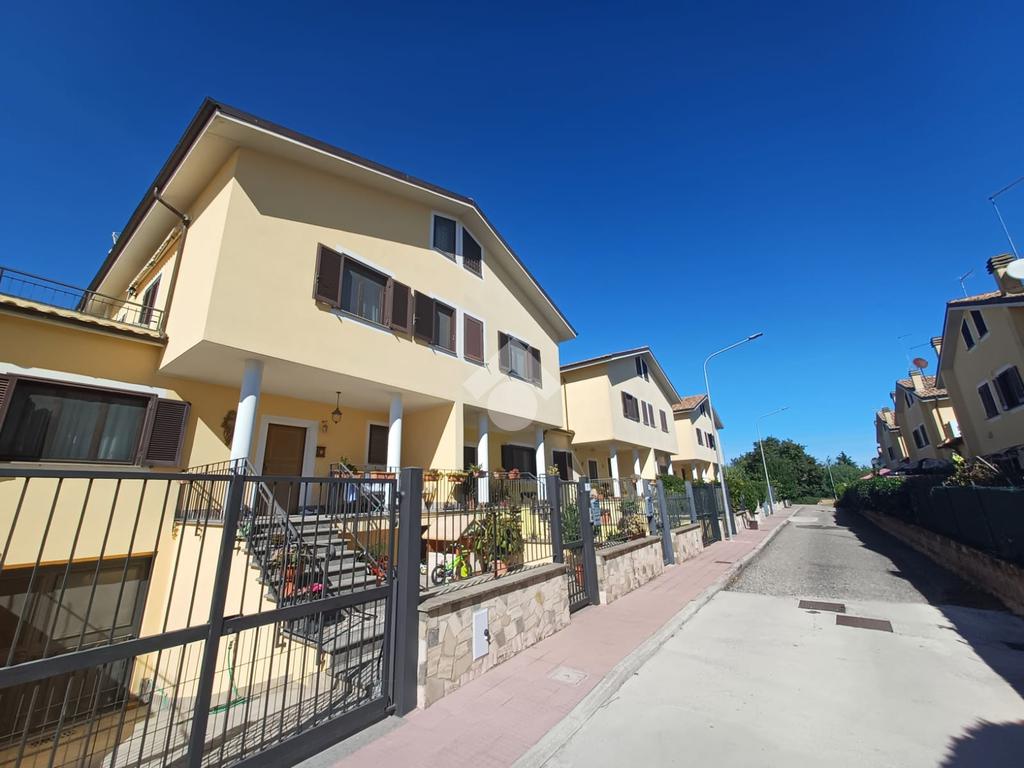 Nel comune di Monterosi, proponiamo in vendita una villa a schiera di 220 mq, ideale per chi cerca una soluzione abitativa spaziosa e funzionale. La proprietà, costruita nel 2008, si sviluppa su più livelli, offrendo una distribuzione degli spazi che garantisce comfort e privacy. Al piano terra, l'ingresso accoglie in un ampio salone con zona pranzo, perfetto per momenti di relax e convivialità. La cucina abitabile, luminosa e ben organizzata, si affaccia su un giardino privato, ideale per pranzi all'aperto. A completare il piano un bagno con doccia. Al piano superiore, la zona notte comprende due ampie camere matrimoniali di cui una con cabina armadio, ed una terza camera/studio: tutti gli ambienti godono di una grande lumiosità ed accesso al terrazzo, un bagno con vasca e doccia completa il piano. Al secondo piano sottotetto troviamo un'ampia camera luminosa con annesso bagno con doccia. Completano la proprietà tre bagni moderni, e un comodo garage. La villa è situata in una zona residenziale tranquilla, con facile accesso ai principali servizi e collegamenti stradali, rendendola una scelta pratica per famiglie anche numerose.