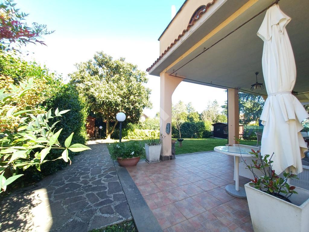 Nell'esclusivo centro residenziale di Colle Farnese, proponiamo in vendita una villa unifamiliare molto luminosa e spaziosa. L'immobile si sviluppa su due piani fuori terra ed è così composto: al piano terra troviamo un ampio salone e adiacente sala da pranzo con numerose finestre ed accesso a due ampi portici di cui uno realizzato con legno pregiato, cucina abitabile, bagno con doccia e ripostiglio; al piano primo abbiamo due camere matrimoniali con soffitti molto alti entrambi con accesso su un grande terrazzo, un'ampia camera mansardata con due finestre e un bagno con vasca. Completano la proprietà un grande giardino di mq 600 ca. , una lavanderia esterna, un corridoio di accesso con possibilità di parcheggiare diverse auto e un seminterrato suddiviso in due ambienti con accesso al giardino. La casa è provvista di grate, persiane in ferro, finestre con vetrocamera, condizionatori, stufa a pellet, casette di legno esterne, cancello carrabile e pedonale. Questa proprietà risulta essere la soluzione ideale per chi è in cerca di ampi spazi esterni ed interni, di privacy, e per chi desidera vivere in mezzo al verde senza essere totalmente isolato.